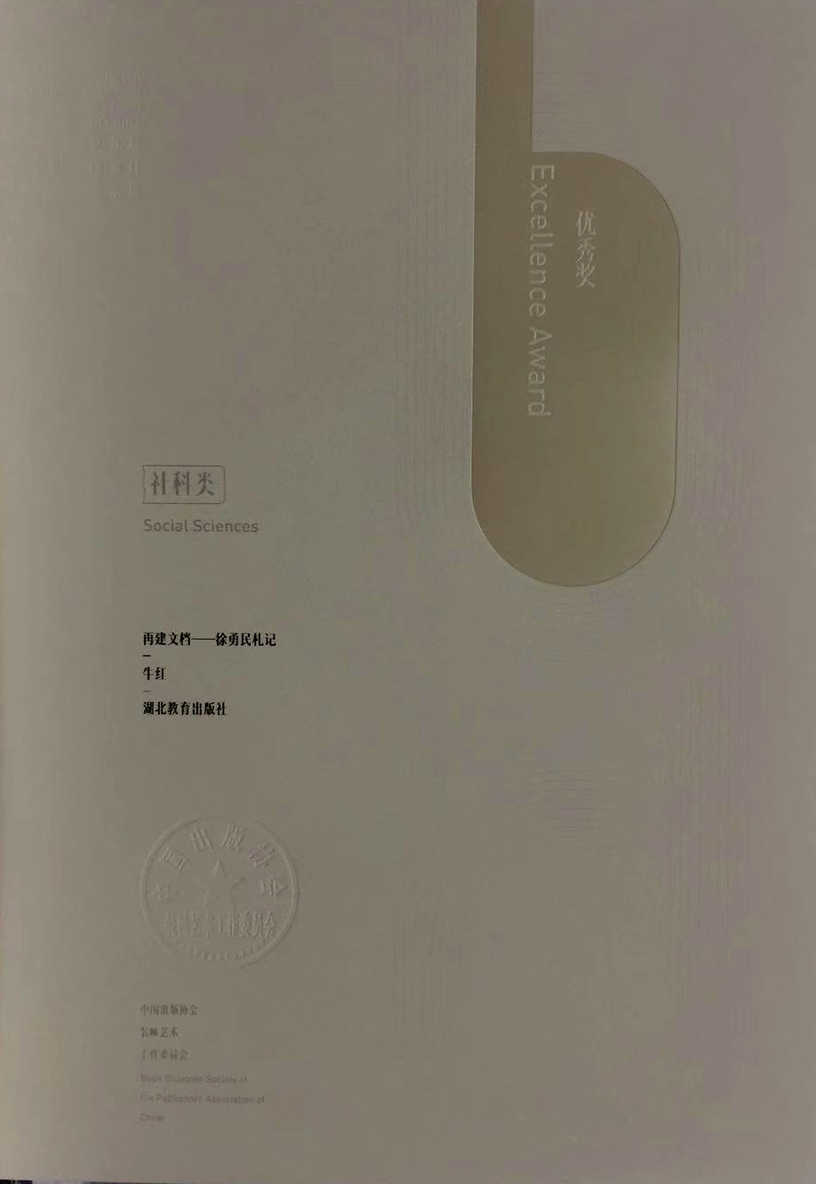 近日,湖北教育出版社出版的《再建文檔——徐勇民札記》榮獲第九屆全國書籍設(shè)計藝術(shù)展社科類優(yōu)秀獎。