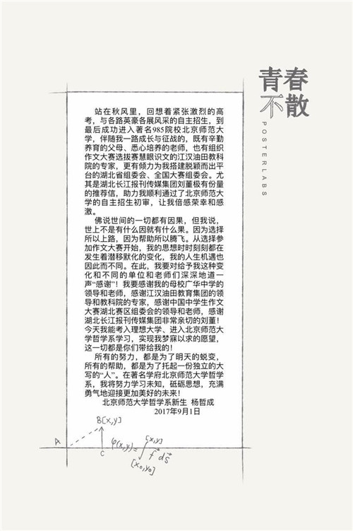 北師大新生向長(zhǎng)江報(bào)刊集團(tuán)寄來感謝信