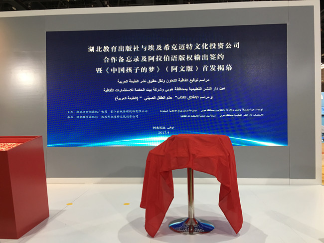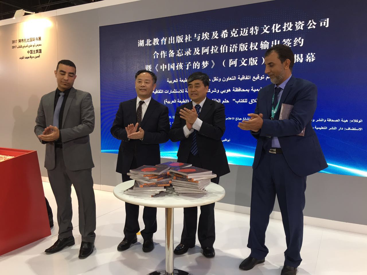 湖北教育出版社與埃及??诉~特文化投資公司在第27屆阿布扎比國際書展上簽署成立"長江傳媒中埃編輯部"合作備忘錄及阿拉伯語版權(quán)輸出協(xié)議,并成功舉行了《中國孩子的夢》阿文版首發(fā)揭幕。