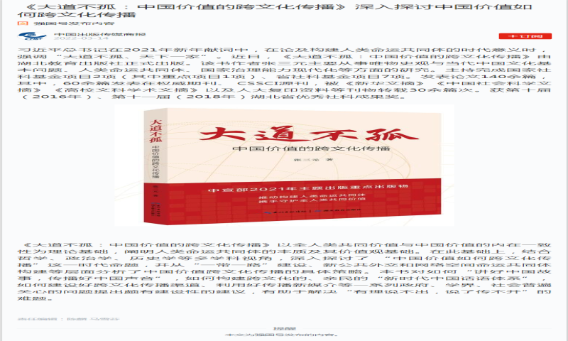 湖北日?qǐng)?bào)客戶端 | 《大道不孤:中國(guó)價(jià)值的跨文化傳播》出版