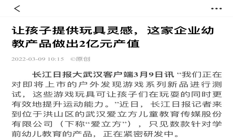 長(zhǎng)江日?qǐng)?bào)大武漢客戶端 | 讓孩子提供玩具靈感,這家企業(yè)幼教產(chǎn)品做出2億元產(chǎn)值