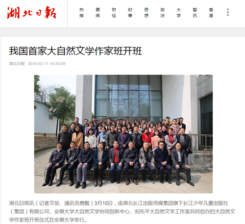 近日,《湖北日?qǐng)?bào)》《出版商務(wù)周報(bào)》《中國(guó)新聞出版廣電報(bào)》《文藝報(bào)》等國(guó)家級(jí)和省級(jí)媒體熱議、報(bào)道、宣傳長(zhǎng)江少年兒童出版社攜手安徽大學(xué)創(chuàng)辦我國(guó)第一家大自然文學(xué)作家班,在社會(huì)各界引起強(qiáng)烈反響。