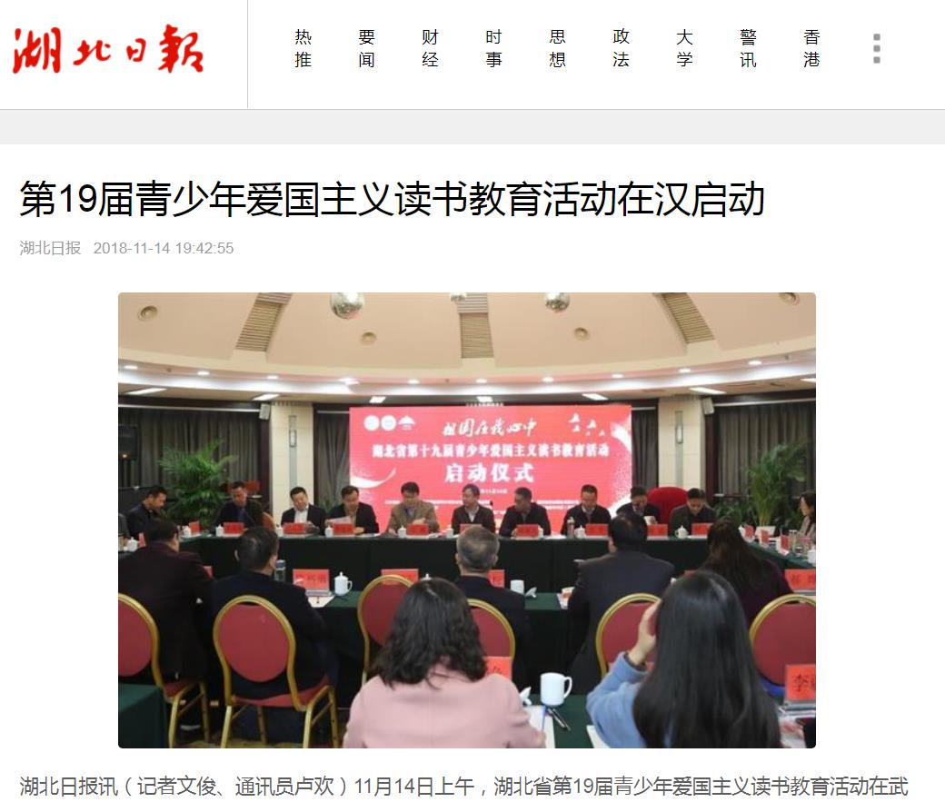 湖北日報(bào)|第19屆青少年愛國主義讀書教育活動在漢啟動