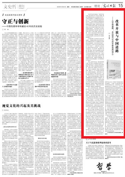 《光明日報(bào)》文史哲周刊·理論版(第15版)刊發(fā)人民社新書《中國道路:走向現(xiàn)代化的全新選擇》書訊。