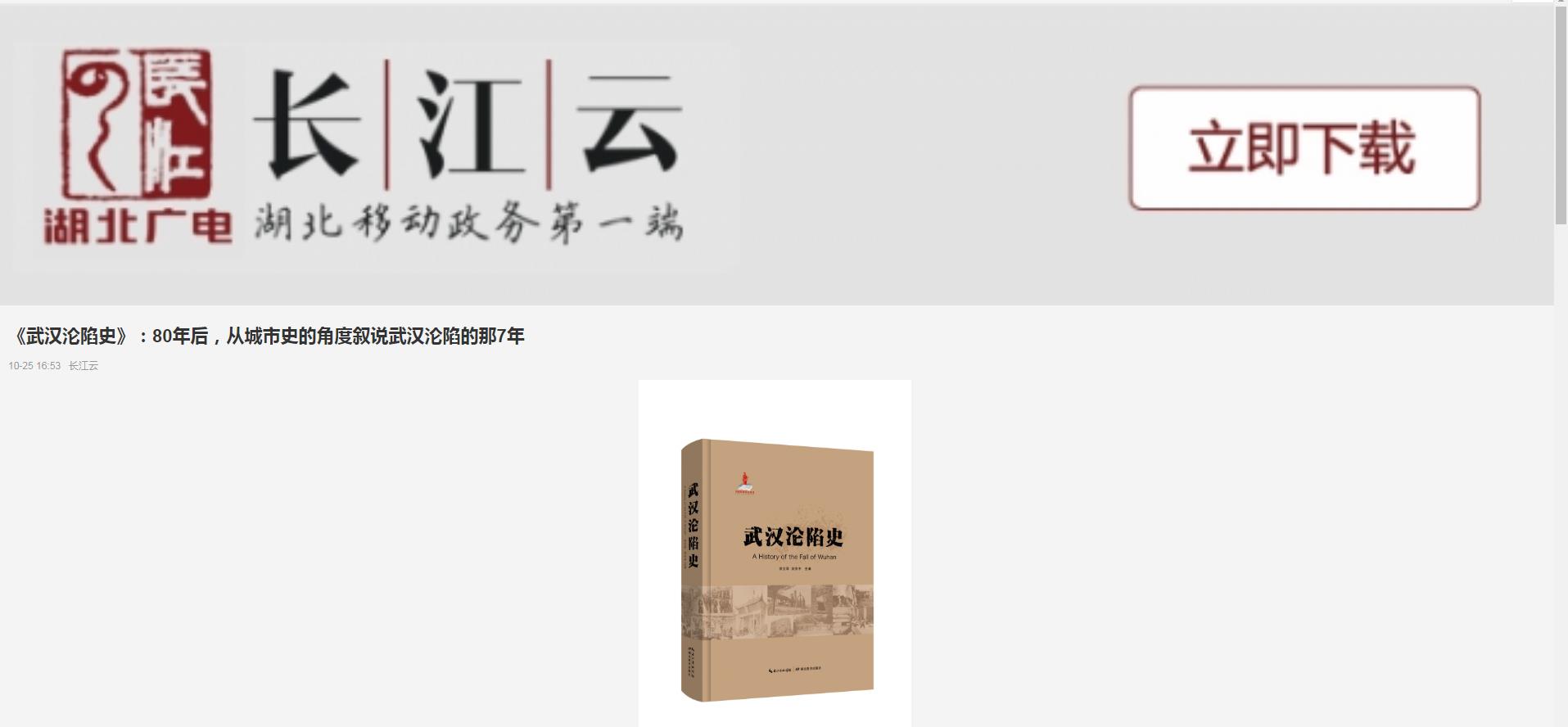 楚天都市報|讓我們銘記歷史《武漢淪陷史》出版