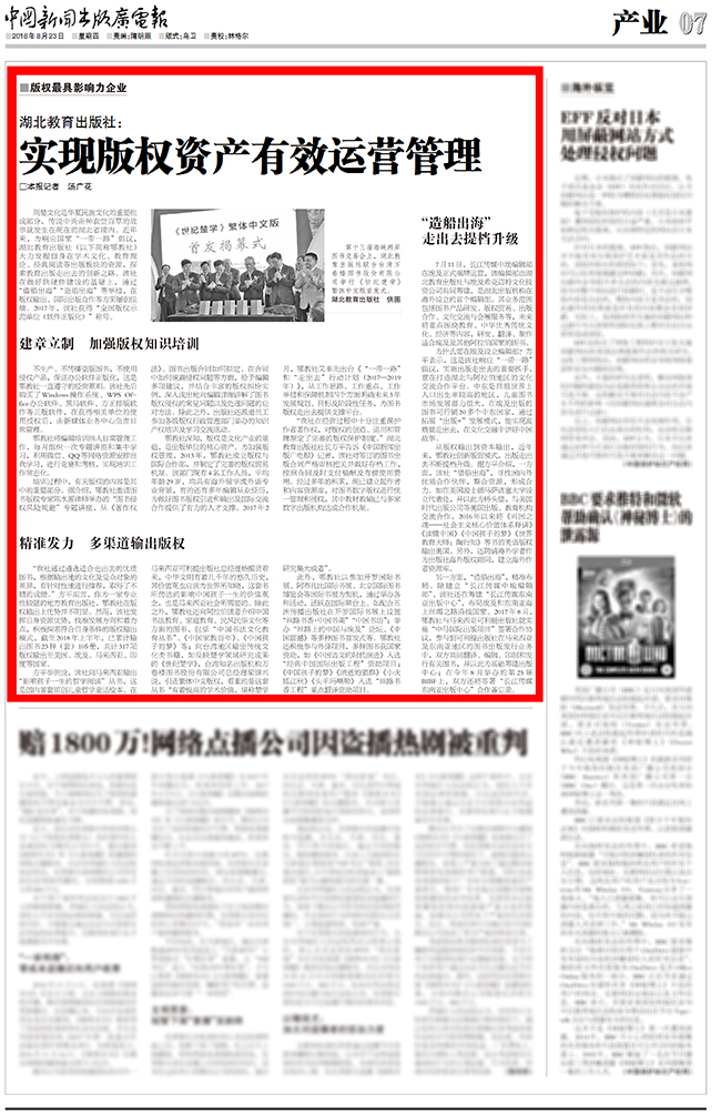 中國(guó)新聞出版廣電報(bào)|湖北教育社:實(shí)現(xiàn)版權(quán)資產(chǎn)有效運(yùn)營(yíng)