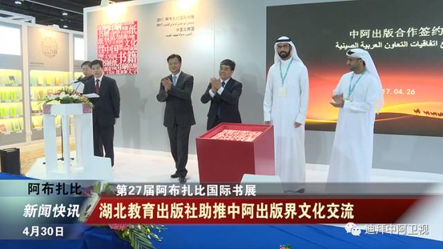 4月26日,在第27屆阿布扎比國際書展上,湖北教育出版社與埃及??诉~特文化投資公司簽署成立“長江傳媒中埃編輯部”合作備忘錄及阿拉伯語版權(quán)輸出協(xié)議。
