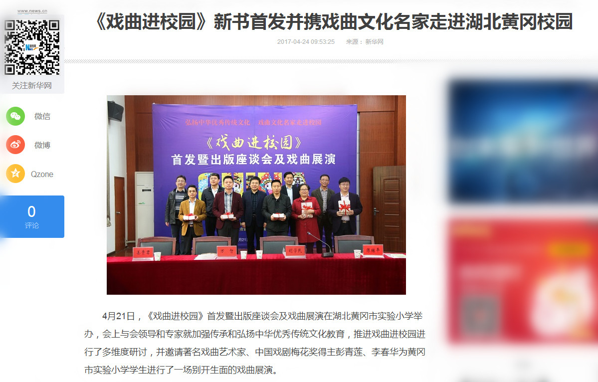 新華網(wǎng):《戲曲進校園》新書在黃岡校園首發(fā)