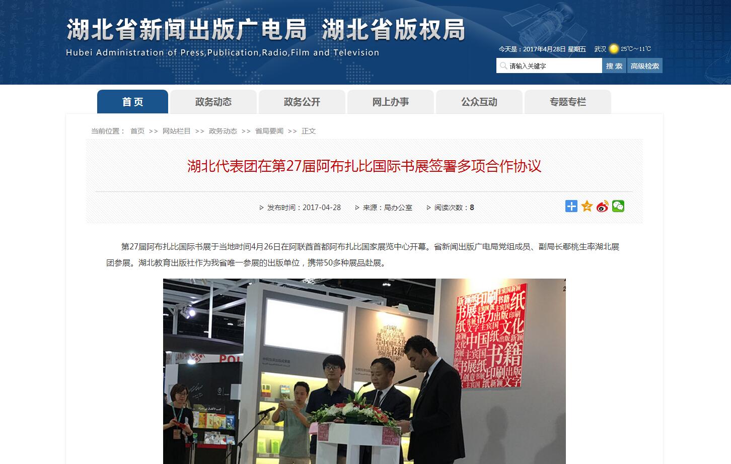 湖北省新聞出版廣電局官網(wǎng):湖北代表團在第27屆阿布扎比國際書展簽署多項合作協(xié)議