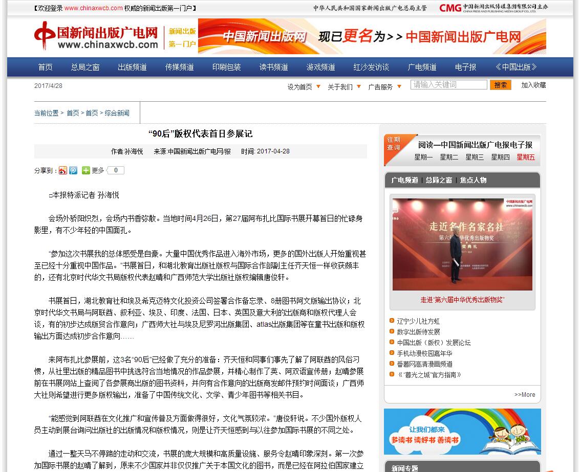 中國新聞出版廣電網(wǎng):“90后”版權(quán)代表首日參展記