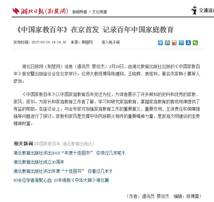 荊楚網(wǎng):《中國家教百年》在京首發(fā)