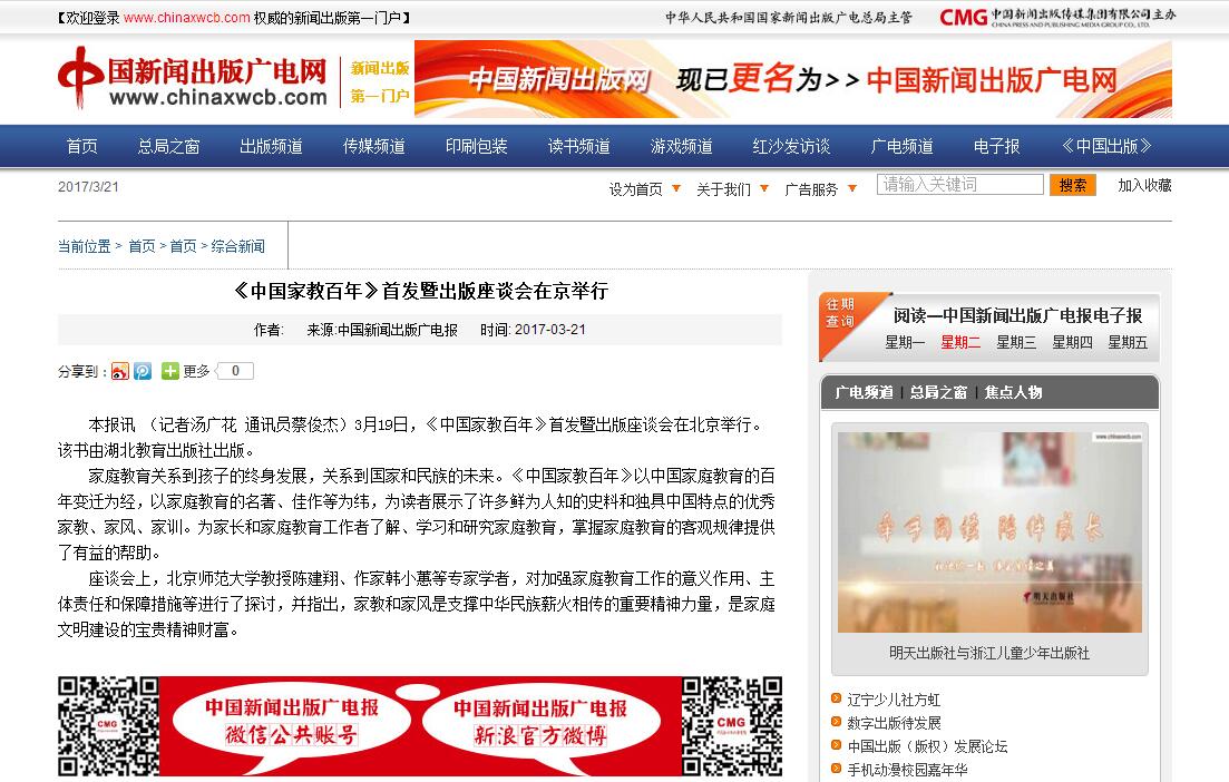 中國新聞出版廣電報:《中國家教百年》在京首發(fā)