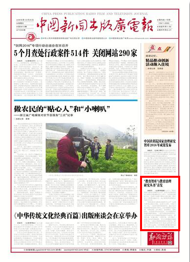 中國(guó)新聞出版廣電報(bào):“教育智庫(kù)與教育治理研究叢書”首發(fā)