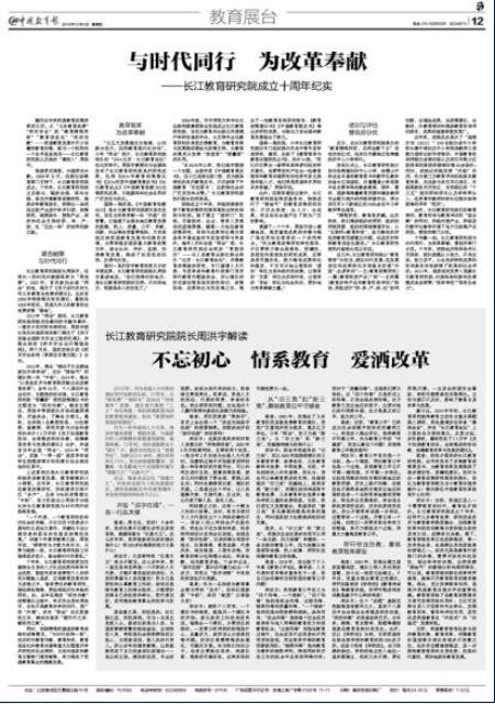 中國(guó)教育報(bào):與時(shí)代同行為改革奉獻(xiàn)——長(zhǎng)江教育研究院成立十周年紀(jì)實(shí)