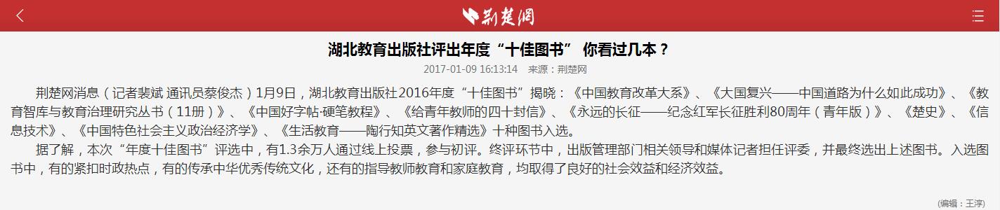 荊楚網(wǎng):湖北教育出版社評(píng)出年度“十佳圖書”你看過幾本?