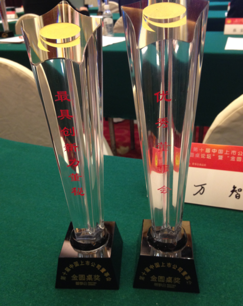 2014年11月6日至7日,第十屆董事會金圓桌論壇在南京舉行,長江傳媒榮獲2014年優(yōu)秀董事會稱號,公司董事會秘書萬智榮獲2014年最具創(chuàng)新力董秘獎。 《董事會》雜志是中國唯一以公司治理、董事會建設(shè)為核心內(nèi)容的期刊?!抖聲冯s志每年一度的上市公司最佳董事會評選