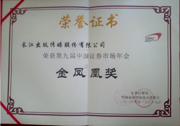 第九屆中國證券市場年會閉幕 長江傳媒榮獲“金鳳凰獎”