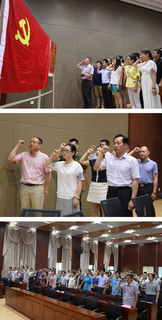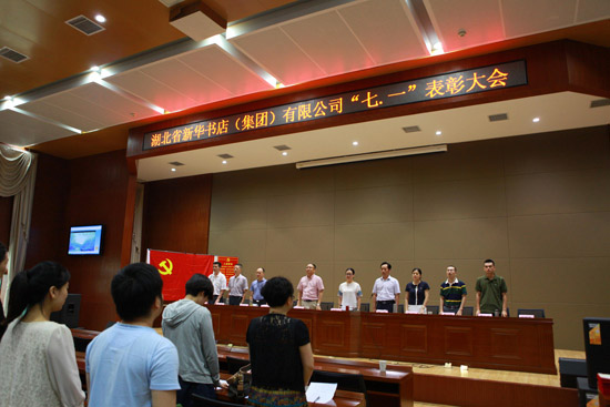 根據(jù)會(huì)議安排,書(shū)店集團(tuán)公司黨委委員張軍帶領(lǐng)集團(tuán)公司總部15名新黨員在主席臺(tái)上面向黨旗進(jìn)行了莊嚴(yán)宣誓,其余全體黨員原地起立一起重溫了入黨誓詞。