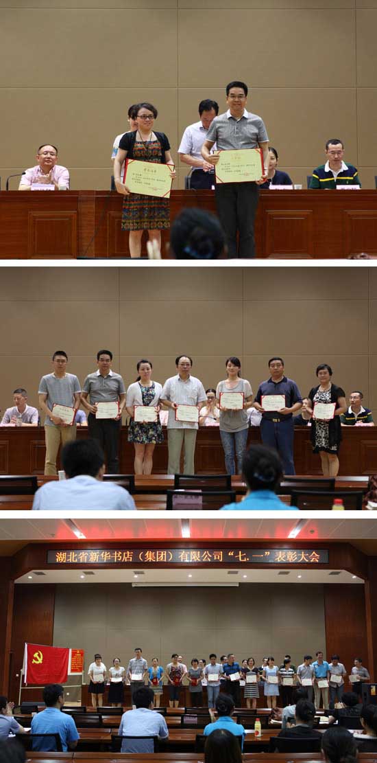 會(huì)上,書(shū)店集團(tuán)公司黨委委員張軍宣讀了《中共湖北省新華書(shū)店(集團(tuán))有限公司委員會(huì)關(guān)于表彰2013-2014年度先進(jìn)基層黨組織、優(yōu)秀黨務(wù)工作者和優(yōu)秀共產(chǎn)黨員的決定》(以下簡(jiǎn)稱(chēng)《表彰決定》),《表彰決定》對(duì)書(shū)店集團(tuán)公司2013-2014年度在基層組織建設(shè)中涌現(xiàn)出的2個(gè)先進(jìn)基層黨組織——第一黨支部、第二黨支部,7名優(yōu)秀黨務(wù)工作者——王銳、周子林、李靜、陳洪波、艾冬輝、柳順元、錢(qián)璐玲和15名優(yōu)秀共產(chǎn)黨員——胡碧珍、鄭曉萌、楊山川、趙宏、趙立、劉偉、孫緒海、余靜、李?lèi)?ài)華、侯先靈、李耀庭、何正洪、李明輝、代大華、王偉進(jìn)行了通報(bào)表彰。書(shū)店集團(tuán)公司黨委班子成員分別為獲獎(jiǎng)的黨支部和黨員同志頒發(fā)了榮譽(yù)證書(shū)并合影留念。