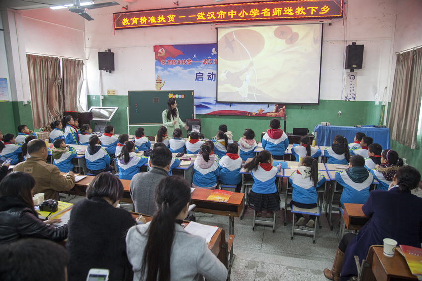 圖為教育精準(zhǔn)扶貧——武漢市中小學(xué)名師送教下鄉(xiāng)活動(dòng)啟動(dòng)儀式