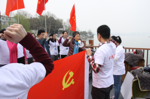 東湖畔,股份公司黨委委員、監(jiān)事會主席宋丹娜領(lǐng)讀了入黨誓詞。集團(tuán)公司副總裁那拓祺、黨委委員史可榮均以所在支部黨員的身份參加了徒走活動。長江傳媒數(shù)字總監(jiān)、數(shù)字公司支部書記田榮華在出差途中也對此次活動表達(dá)了關(guān)心。