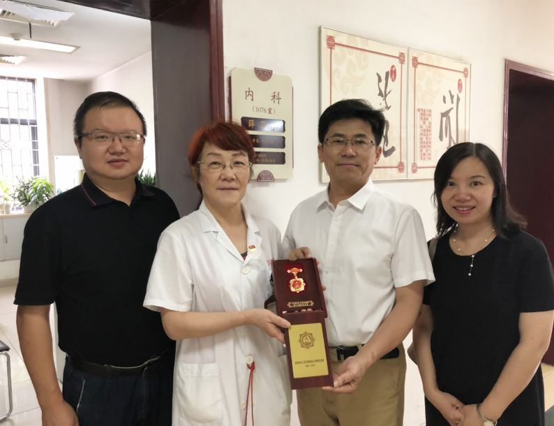 9月17日,因薛老身體原因,民盟湖北省委副主委葉春松率我支部主委余杉、盟省委組織部副部長李坤將紀(jì)念章送到薛老女兒手中,對薛老獲此殊榮表達(dá)熱烈祝賀并致以親切問候。