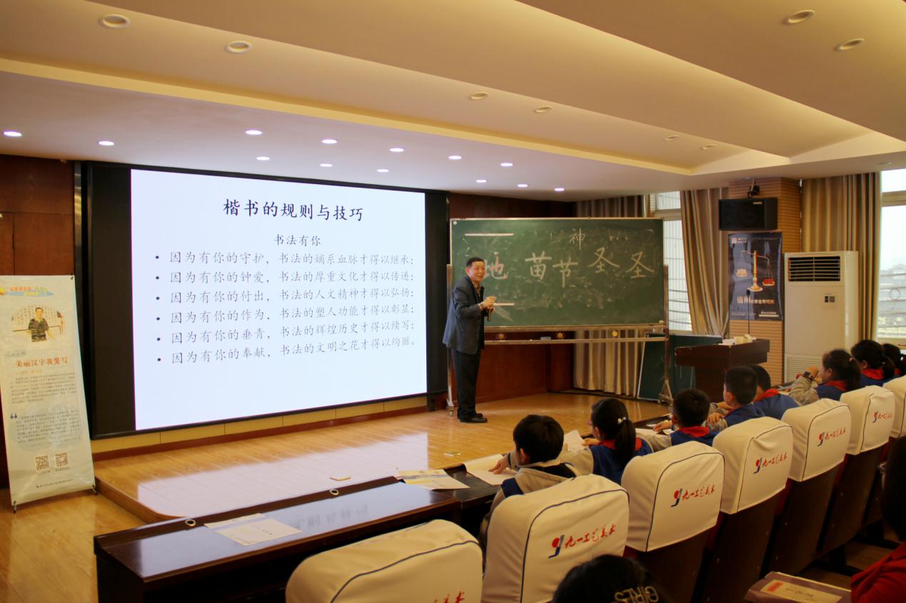 3月22日下午,吳玉生老師做客武漢市江夏區(qū)明熙小學(xué),帶來(lái)了一場(chǎng)題為“美麗漢字我愛寫——書法名家進(jìn)校園”的講座,受到了該校師生的熱烈歡迎。