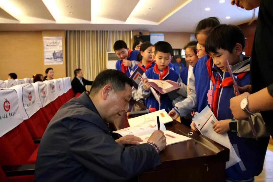 活動(dòng)中,湖北教育出版社向武漢市江夏區(qū)明熙小學(xué)、黃石市廣場(chǎng)路小學(xué)的學(xué)生代表贈(zèng)送了《中國(guó)好字帖》系列叢書,吳玉生老師現(xiàn)場(chǎng)為學(xué)生簽名留念。
