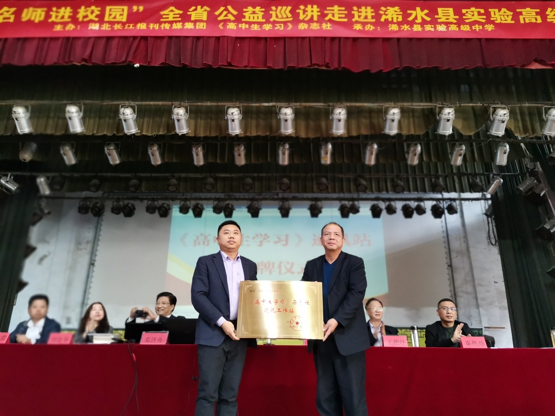 活動(dòng)包括《高中生學(xué)習(xí)》雜志社浠水縣實(shí)驗(yàn)高中通訊工作站授牌儀式、桂子山教育研究院專家授聘和公益講座等三個(gè)環(huán)節(jié)?;顒?dòng)由浠水縣實(shí)驗(yàn)高中副校長(zhǎng)陳利平主持。