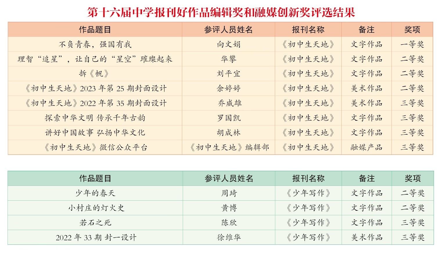 喜報(bào)!《初中生天地》《少年寫作》榮獲多項(xiàng)第十六屆中學(xué)報(bào)刊好作品編輯獎(jiǎng)和融媒創(chuàng)新獎(jiǎng)