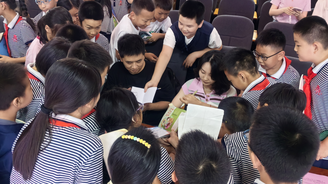 和自己喜歡的雜志編撰者“零距離”接觸,麻城八小的同學(xué)們興奮不已?;顒咏Y(jié)束后,大家將編輯老師團(tuán)團(tuán)圍住,爭先恐后地請他們在《小學(xué)生天地》雜志上簽名留念。