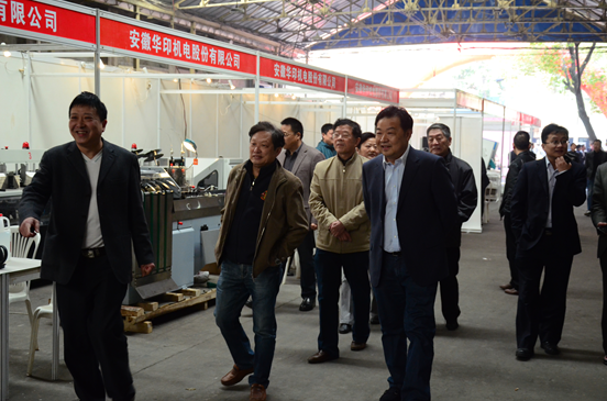(袁國雄董事長陪同湖北省印刷協(xié)會王光泰會長參觀展會現(xiàn)場)