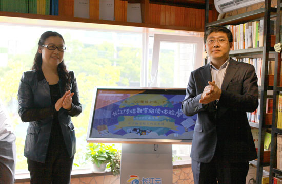 本網(wǎng)訊(通訊員胡云意)4月22日,由長江傳媒旗下數(shù)字公司攜手阿里巴巴打造的數(shù)字閱讀體驗館在新華集團九丘書館舉行開館儀式。數(shù)字公司總經(jīng)理田榮華主持開館儀式。