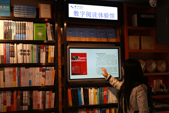 據(jù)周怡經(jīng)理介紹,九丘書館作為24小時不打烊的特色書店開館后受到社會熱捧,省委書記李鴻忠年初曾親臨書店予以肯定,并寄語紙質(zhì)閱讀與數(shù)字閱讀相融合。長江傳媒數(shù)字閱讀體驗館作為九丘書館的“館中館”應(yīng)運而生。在九丘讀者可通過長江云全民閱讀機、閱讀平板在館內(nèi)實現(xiàn)電子產(chǎn)品的閱讀、購買、預(yù)定、借閱等功能,并享受相關(guān)便民服務(wù)。
