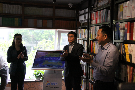 數(shù)字閱讀體驗館啟動儀式上,湖北省全閱辦發(fā)來賀電,“長江傳媒數(shù)字閱讀體驗館在九丘書館開館,是傳統(tǒng)閱讀與數(shù)字閱讀融合的良好范例,是文化與科技融合的有益探索。”