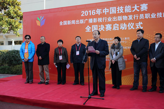 中國書刊發(fā)行業(yè)協(xié)會理事長艾立民在2016年技能大賽開幕式上講話