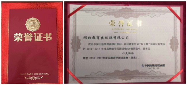 2017年1月9日,“教育·出版·互聯(lián)高峰論壇”在北京舉行。論壇上揭曉了由中國出版?zhèn)髅缴虉?bào)社發(fā)起的2016~2017年中國品牌教輔TOP榜獲獎(jiǎng)項(xiàng)目名單。教育社《心靈物語》叢書榮獲2016-2017年度中國品牌助學(xué)閱讀讀物銀獎(jiǎng)。