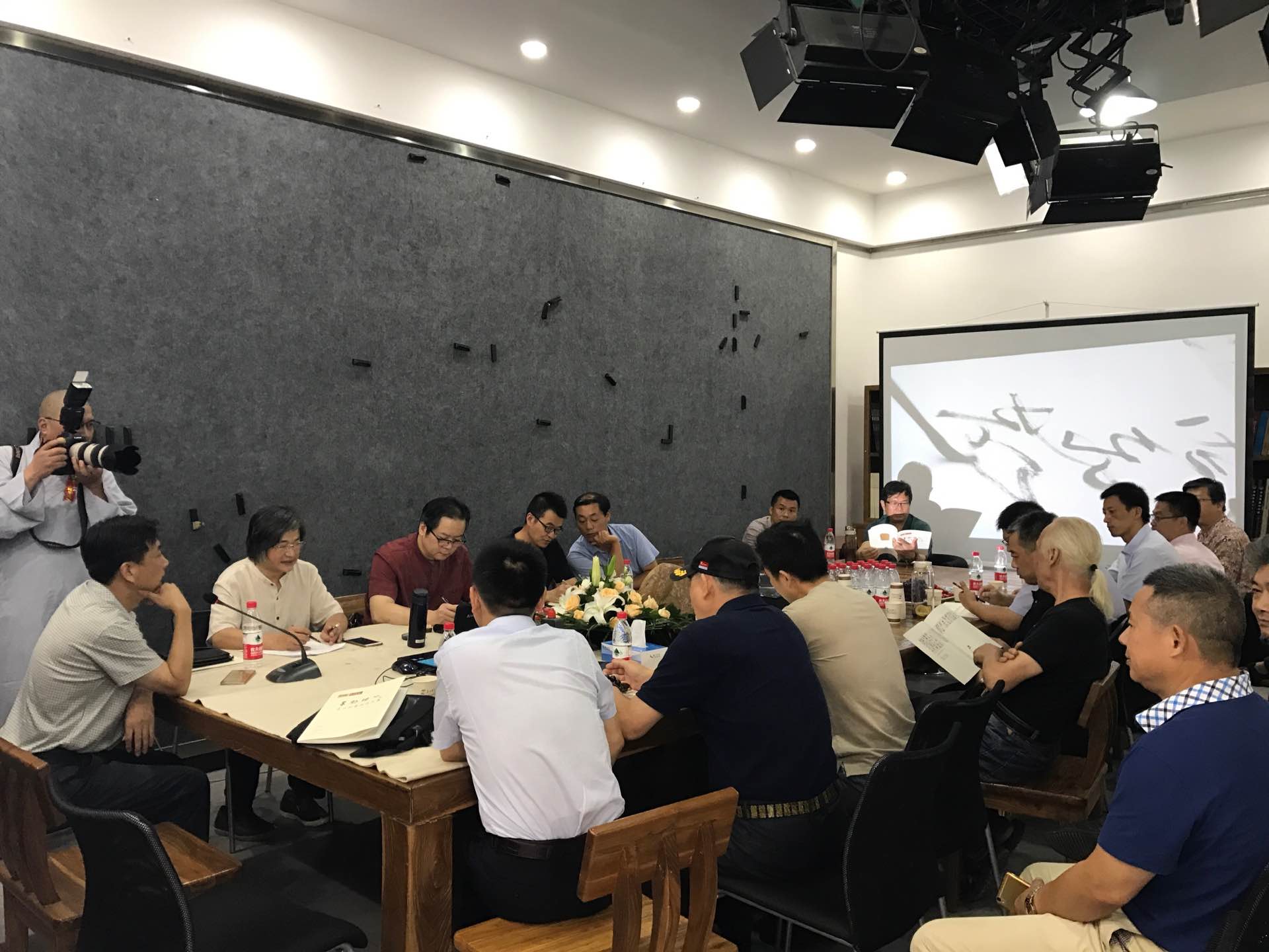 開幕式結束后,與會的嘉賓在美術館外合影,隨后郭衍槐理事主持舉行了虞立新作品研討會。展覽將持續(xù)到8月25日,歡迎大家前來參觀指導!