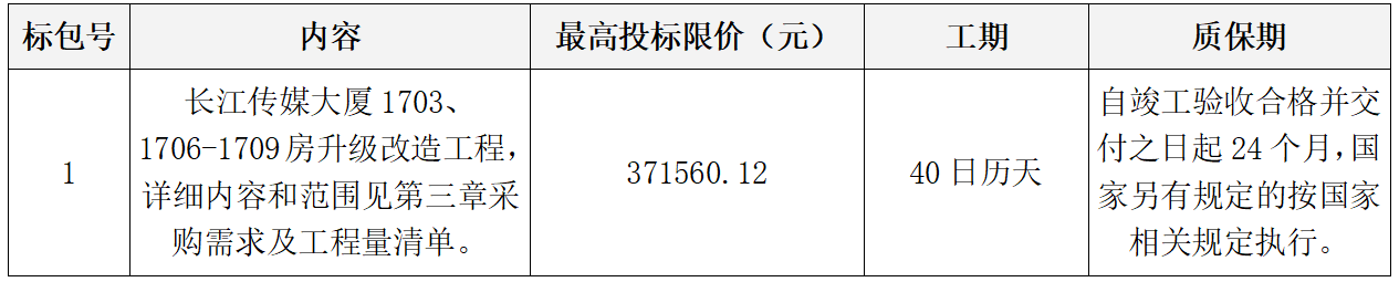 長江傳媒大廈1703、1706-1709房升級改造工程招標(biāo)公告