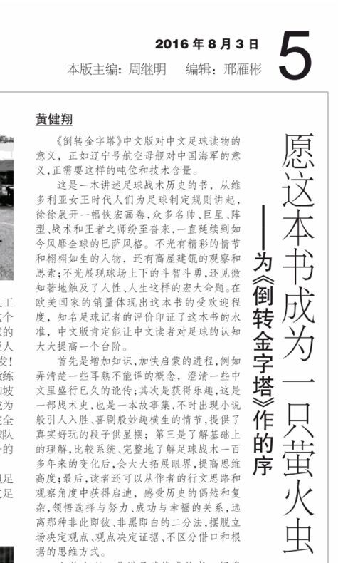 中國體育報刊登《倒轉金字塔》黃健翔推薦序