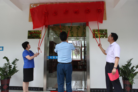 出席領(lǐng)導(dǎo)共同為“九丘軍營書館”揭牌。
