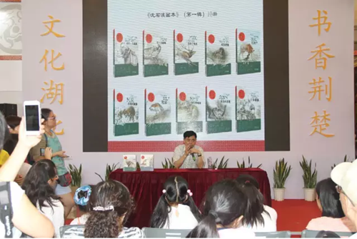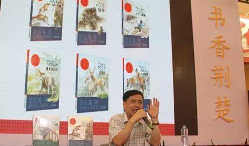 書展第一天,著名兒童文學(xué)作家、“中國動(dòng)物小說大王”沈石溪的簽售會(huì)在湖北主賓館活動(dòng)區(qū)舉行?;顒?dòng)現(xiàn)場,沈石溪做了名為《大自然給了我創(chuàng)作靈感》的演講,現(xiàn)場簽售了《沈石溪畫本》第一輯和第二輯,以及8月最新出版的《沈石溪畫本·注音書系列》第一輯。