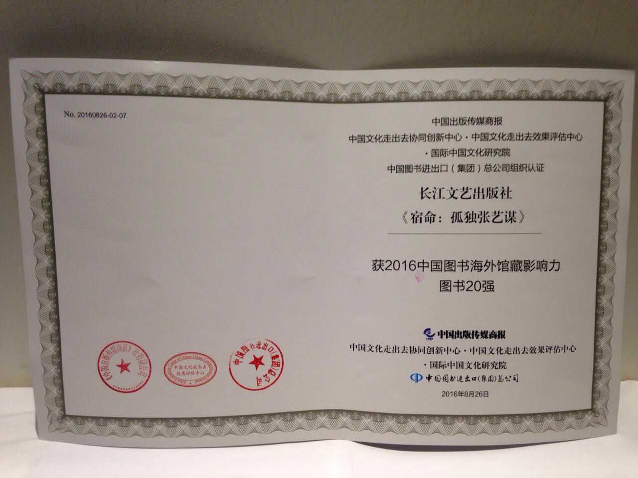 其中,長(zhǎng)江文藝出版社排名第36名,同時(shí)其出版的《宿命:孤獨(dú)張藝謀》《床畔》分別榮獲2016中國(guó)圖書(shū)海外館藏影響力圖書(shū)20強(qiáng)