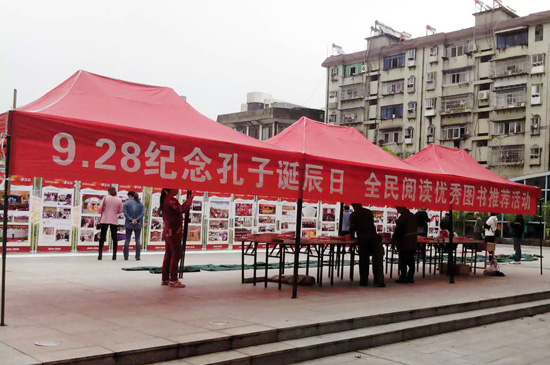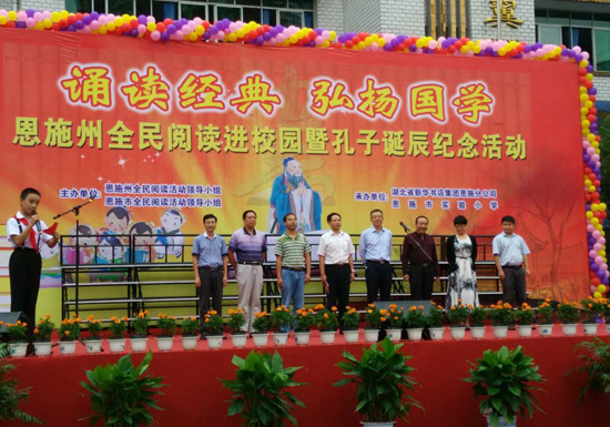 各地“孔子誕辰”全民閱讀相關(guān)紀(jì)念活動(dòng)異彩紛呈。9月28日,在新華書城泛海店舉行的“拜孔禮?誦經(jīng)典”——孔子誕辰日紀(jì)念活動(dòng)現(xiàn)場(chǎng),孩子們?cè)诶蠋煹膸ьI(lǐng)下學(xué)禮儀誦經(jīng)典,引得眾多市民駐足觀看;恩施州分公司在其所承辦的“誦讀經(jīng)典 弘揚(yáng)國學(xué)”——2016年恩施州全民閱讀進(jìn)校園暨“孔子誕辰”紀(jì)念活動(dòng)啟動(dòng)儀式上,向?qū)嶒?yàn)小學(xué)學(xué)生贈(zèng)送了4000張精美的優(yōu)惠活動(dòng)劵綠書簽,引導(dǎo)孩子們熱愛閱讀;在英山縣文化局、新華集團(tuán)英山縣分公司和縣圖書館聯(lián)合開展的“9.28”孔子誕辰日全民閱讀活動(dòng)中,縣文化局相關(guān)領(lǐng)導(dǎo)親臨現(xiàn)場(chǎng)助推全民閱讀,本地知名作家田?,F(xiàn)場(chǎng)簽售其力作《風(fēng)情萬古流—英山出彩簡(jiǎn)史》并接受媒體采訪;在美麗的新華?格致通山一中校園店,78名學(xué)生現(xiàn)場(chǎng)齊聲誦讀國學(xué)經(jīng)典,并在“全民閱讀倡議書”上留下青春洋溢的簽名助力全民閱讀;黃岡、丹江口、竹山等分公司紛紛開展“優(yōu)質(zhì)服務(wù)進(jìn)校園、進(jìn)軍營、進(jìn)社區(qū)”活動(dòng),為師生、官兵和市民們送去悠悠書香;赤壁市分公司與市圖書館聯(lián)合舉辦“迎國慶金秋惠閱讀‘你看書 我買單’”活動(dòng)惠享讀者……