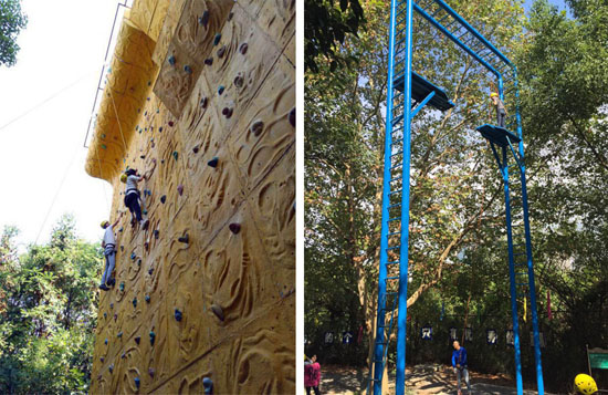 隨后,4支團隊分別開展了高空斷橋、攀巖、盲人排隊、極限60秒等拓展項目,充分發(fā)掘個人潛能。從一開始的隨機組隊對抗,到一系列的拓展項目,既考驗了隊員的個人意志、溝通能力和挑戰(zhàn)自我的勇氣,同時也傳遞了一個團隊只有注重整體配合,隊員們相互理解、相互信任、相互包容才能成功的正能量。