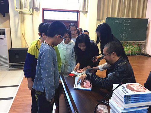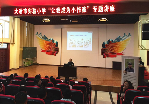 10月14日上午,黃春華為大冶市實(shí)驗(yàn)小學(xué)的同學(xué)帶去了名為“讓我成為小作家”的專題演講,以《校園童盟》的創(chuàng)作過程為例,教大家如何使故事具備相對獨(dú)立、完整的開端、發(fā)展、高潮和結(jié)尾?,F(xiàn)場反響熱烈,講座結(jié)束后作家為同學(xué)們簽名贈書。