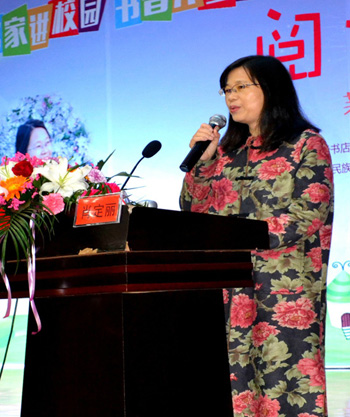 活動邀請到著名兒童文學作家肖定麗以“悅讀與成長”為題,為學校700余位五年級學生,講述了自己童年時代的成長經(jīng)歷、生活閱歷和培養(yǎng)閱讀興趣的重要性。她說,正因為從小養(yǎng)成了愛閱讀、多閱讀的良好習慣,才使自己逐步走上了兒童文學創(chuàng)作之路。她精彩的演講贏得了同學們的陣陣掌聲?;顒又校魇┦蟹止粳F(xiàn)場為該校捐贈了價值4000余元的精品少兒圖書,肖定麗老師為該校簽名贈送了自己的部分代表作品。