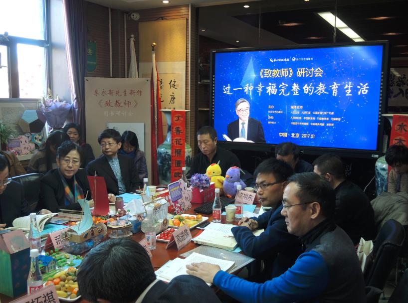 2017年1月13日下午14點,民進(jìn)中央副主席,新教育實驗發(fā)起人朱永新的新書《致教師》研討會在清華附小舉行。教育界、文藝界、學(xué)術(shù)界十多位專家們,一起探討,教育的真正意義,以及如何過一種幸福完整的教育生活。