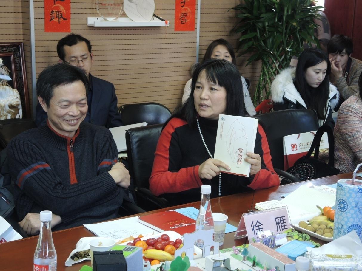 出席研討會的有長江出版?zhèn)髅剑ü煞荩┯邢薰军h委委員、副總裁那拓祺、長江傳媒股份有限公司編委會主任徐德歡、湖北省新聞出版廣電局發(fā)行處處長鄧世清、著名兒童文學(xué)作家陳秋影、央視評選出的“2015最美鄉(xiāng)村教師”高進(jìn)儒、全國政協(xié)委員、中國編輯學(xué)會會長郝振省、著名校長劉彭芝和竇桂梅、“中國教育三十人論壇”秘書長馬國川、北京教科院基礎(chǔ)教育教學(xué)研究中心小學(xué)數(shù)學(xué)室主任吳正憲、愛德星教育有限公司董事長邢如瑞、南京大學(xué)教授徐雁以及香港文匯報高級記者凱雷等,各位嘉賓就《致教師》一書展開了熱烈的討論,現(xiàn)場氣氛熱烈。其中,最美教師高進(jìn)儒關(guān)于《致教師》與鄉(xiāng)村特崗教師的“夢想與堅守,激情與發(fā)現(xiàn)”的發(fā)言,感染了會場所有的與會者,令大家熱淚盈眶。