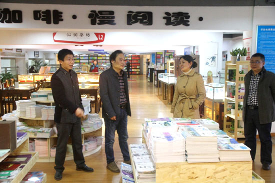 當(dāng)天下午,鄧楚銀一行又來(lái)到潛江進(jìn)行業(yè)務(wù)交流,互通經(jīng)驗(yàn)謀發(fā)展。潛江市分公司班子成員和系統(tǒng)業(yè)務(wù)部、中心連鎖店負(fù)責(zé)人陪同鄧楚銀一行參觀了潛江中心連鎖店,隨后進(jìn)行了座談。座談會(huì)上,潛江市分公司經(jīng)理劉勇介紹了分公司基本情況、連鎖門(mén)店經(jīng)營(yíng)現(xiàn)狀、2016年主營(yíng)業(yè)務(wù)完成及工作開(kāi)展等情況,分享了教材教輔發(fā)行的“六個(gè)統(tǒng)一”、實(shí)踐“一點(diǎn)一信”“兩票兩單”及連鎖經(jīng)營(yíng)的經(jīng)驗(yàn)與做法。雙方就教材教輔發(fā)行、重點(diǎn)圖書(shū)銷(xiāo)售、賣(mài)場(chǎng)和團(tuán)隊(duì)建設(shè)及管理等方面工作作了坦誠(chéng)交流,認(rèn)為彼此在經(jīng)營(yíng)管理上互有優(yōu)勢(shì)與劣勢(shì),需要時(shí)常聯(lián)系溝通、互通有無(wú),相互借鑒、共謀發(fā)展。